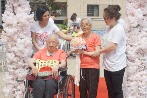 ![]() ![]() ![]() 婚禮現(xiàn)場,朗高工作人員給老人送上鏡子、木梳,對老人們相扶相伴的愛情表示敬佩,并且準備了精彩的文藝節(jié)目。
