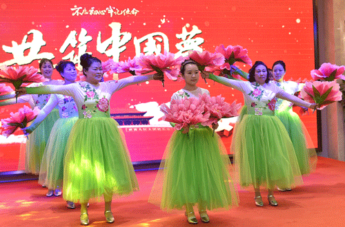 ▲朗高護理院表演團隊為大家?guī)泶髿獾拈_場舞《共筑中國夢》。