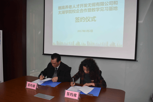 3月2日下午,朗高養(yǎng)老和太湖學(xué)院校企合作暨教學(xué)見習(xí)基地的簽約儀式在朗高梅園護(hù)理院舉行。雙方本著“平等互利、資源共享”的原則,建立長期緊密的合作關(guān)系,發(fā)揮各自優(yōu)勢,完善合作平臺。